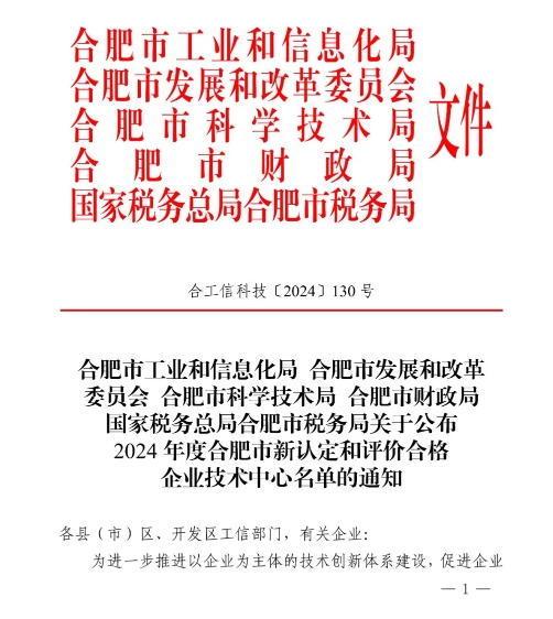 9月5日,合肥市工業(yè)和信息化局公布了《2024年度合肥市新認(rèn)定和評(píng)價(jià)合格企業(yè)技術(shù)中心名單》,安徽得潤電氣技術(shù)有限公司榮膺在列,成功入選。