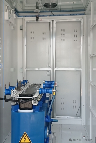 本項目包括箱式變電站及電力電纜。箱式變電站由高壓柜、低壓配電屏、配電變壓器及外殼四部分組成,變壓器選用干變,10kV高壓柜采用負(fù)荷開關(guān)設(shè)備。低壓主進(jìn)開關(guān)采用框架開關(guān),低壓、出線選用塑料外殼式開關(guān)。變壓器室采用單層通風(fēng)結(jié)構(gòu),門板設(shè)有防雨的百葉窗,變壓器室內(nèi)設(shè)有溫控風(fēng)冷系統(tǒng),采用變壓器專用節(jié)點式壓力溫度計,方便觀察變壓器室溫度。針對現(xiàn)場環(huán)境特點,特別設(shè)計了防護(hù)過濾網(wǎng),運(yùn)輸時全封閉,到達(dá)現(xiàn)場后可拆卸面板進(jìn)行通風(fēng)、防塵、防小動物等,有效適應(yīng)各種復(fù)雜環(huán)境。